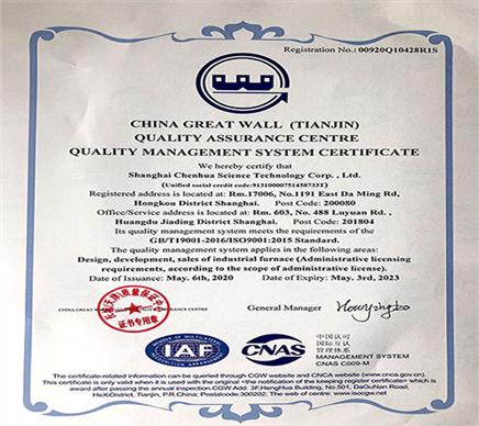 Shanghai Chenhua certified ISO9001:2015 Quality Standards Certificate